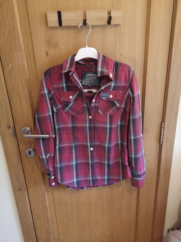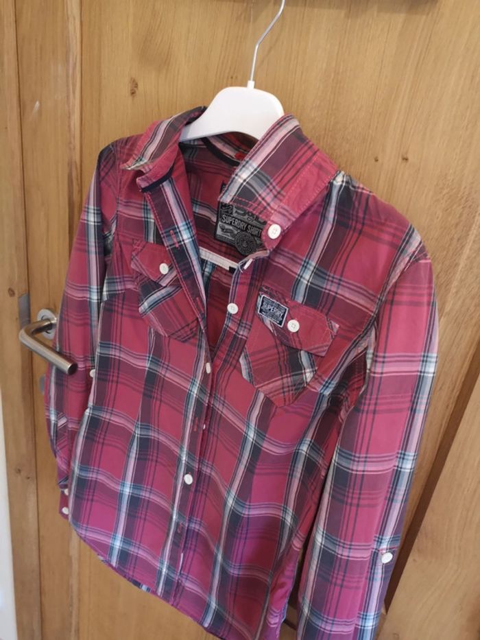 Chemise à longues manches Superdry dans les tons rose. Avec boutons sur le devant et deux petites poches à l'avant. #alexam_femmexs #chemisesuperdryxs #chemisefemmexs