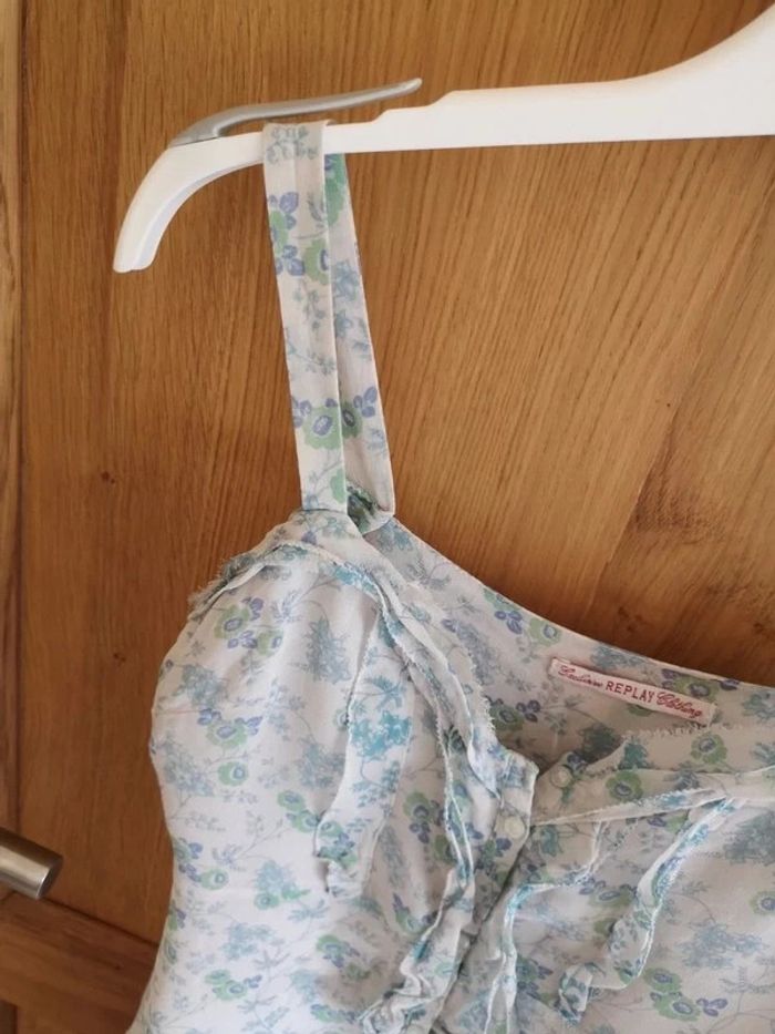 Robe Replay en blanc fleurie dans les tons vert et bleu. Robe assez courte, je la portais en tunique. État impeccable #alexam_femmexs #replayxs #robexs