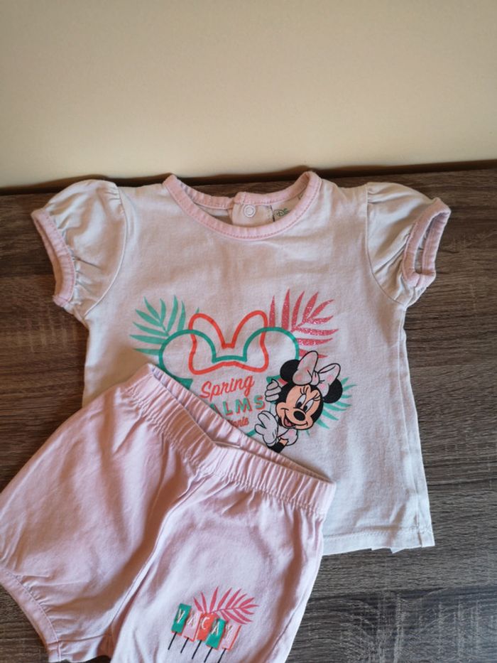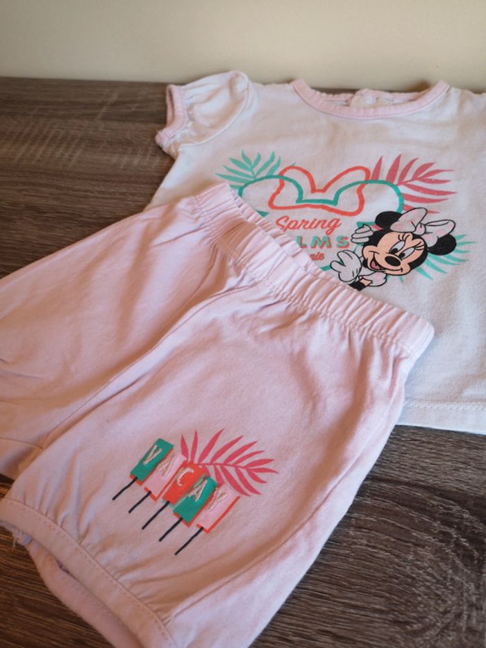 Pyjama deux pièces Disney avec T-shirt blanc et short rose pâle Minnie. Taille 12 mois. #alexam_fille12mois #disney12mois #ensemble12mois