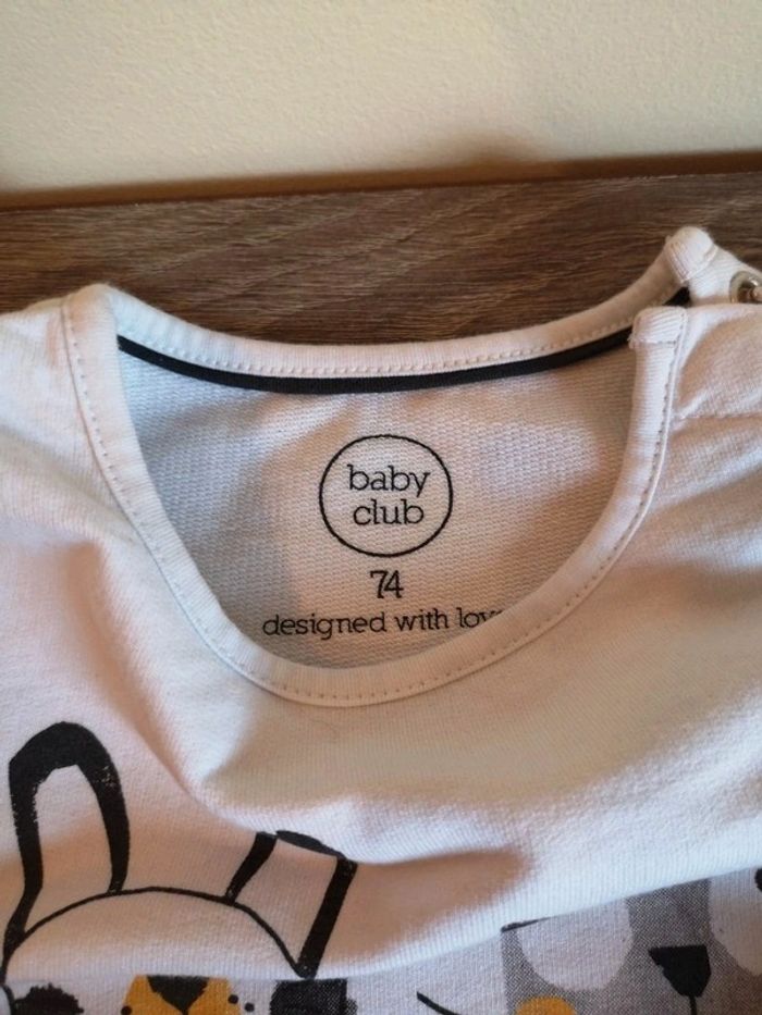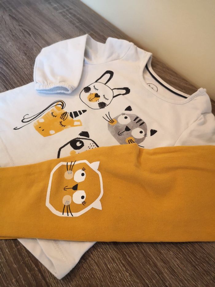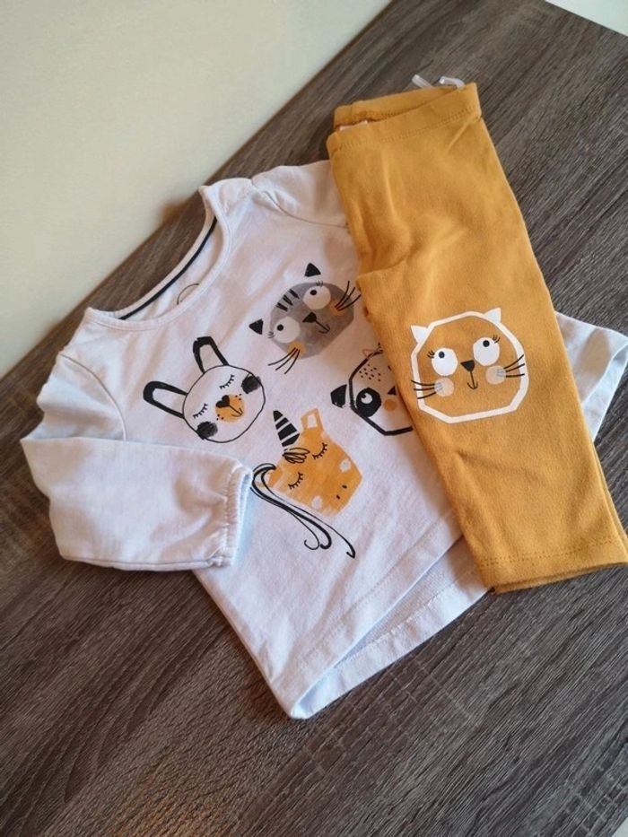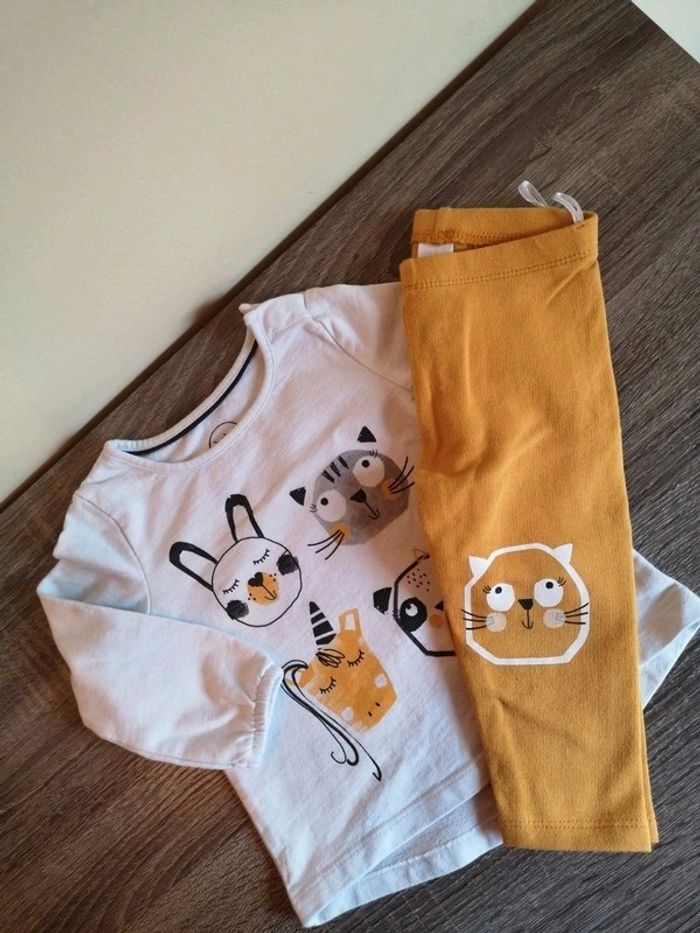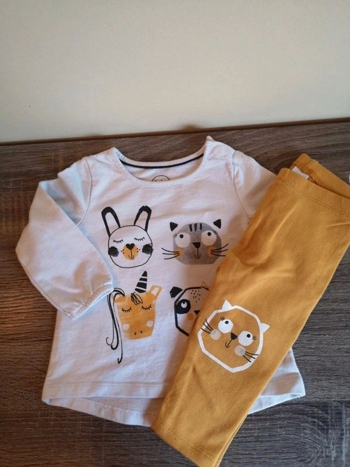 Ensemble Baby Club de chez C&A avec T-shirt blanc à imprimé et pantalon legging moutarde. Taille 9 mois #alexam_fille9mois #babyclub74 #ensemble9mois #cetafille9mois