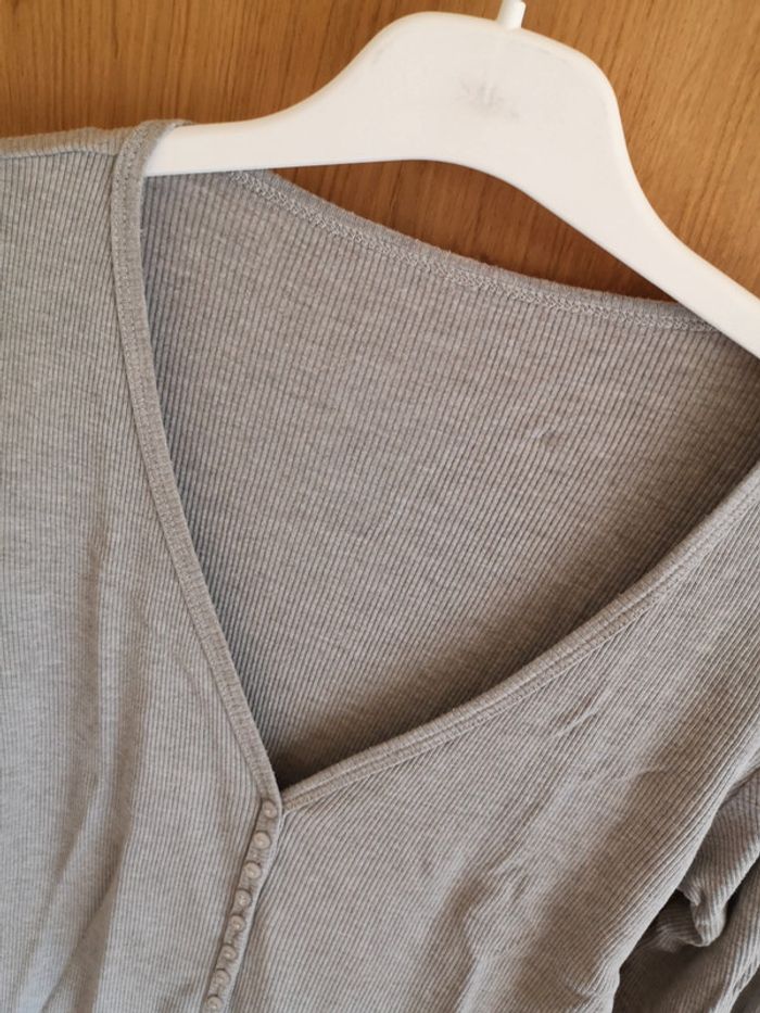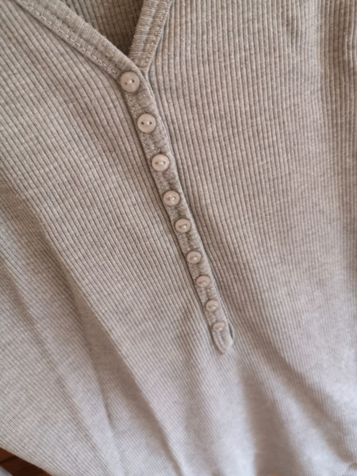 T-shirt uni gris avec boutons sur le devant cop copine. Taille 2 (M) et près du corps. #alexam_femmeM #copcopine38 #tshirt38