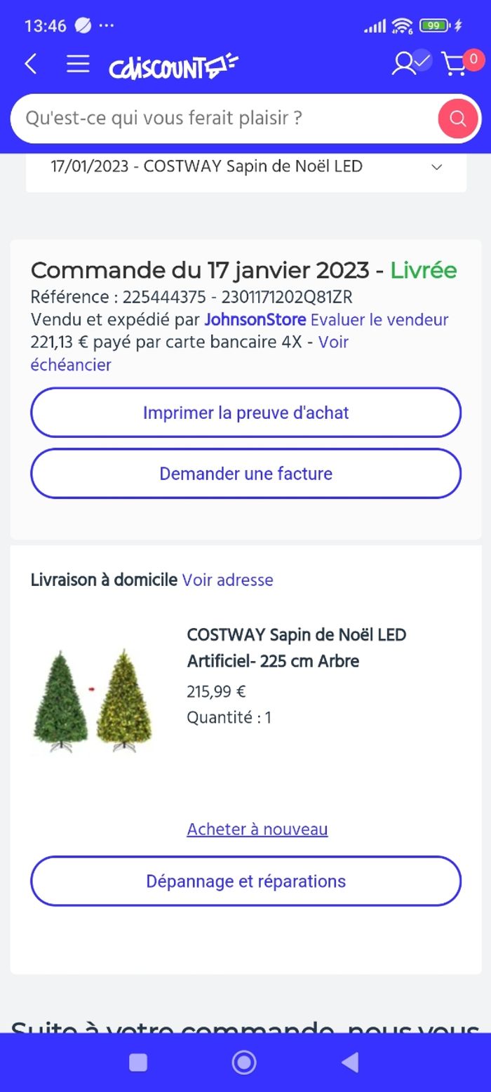 Sapin de Noël artificiel effet naturel de 225 cm de haut avec led intégré je l'ai utilisé qu'un seul Noël acheté 215€ je le vends 110€ .