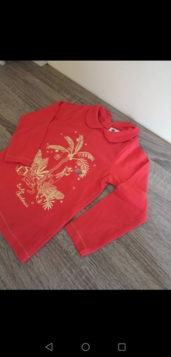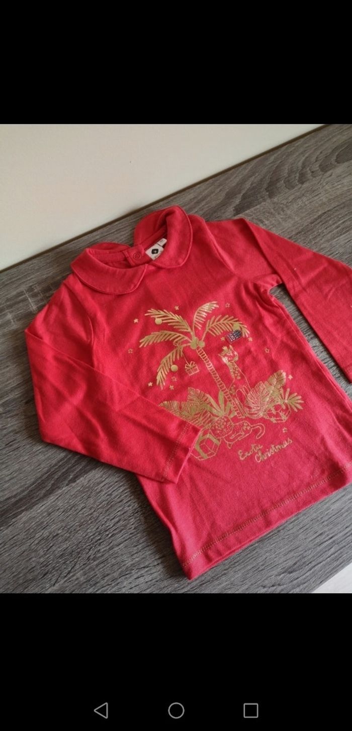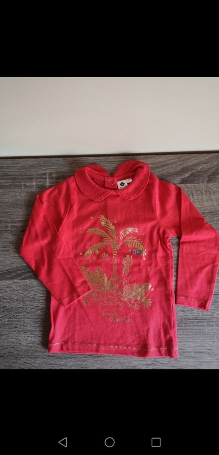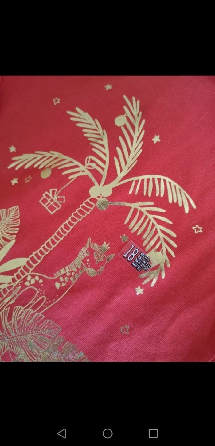 T-shirt polo à longues manches en rouge et imprimé doré. Taille 18 mois. Neuf