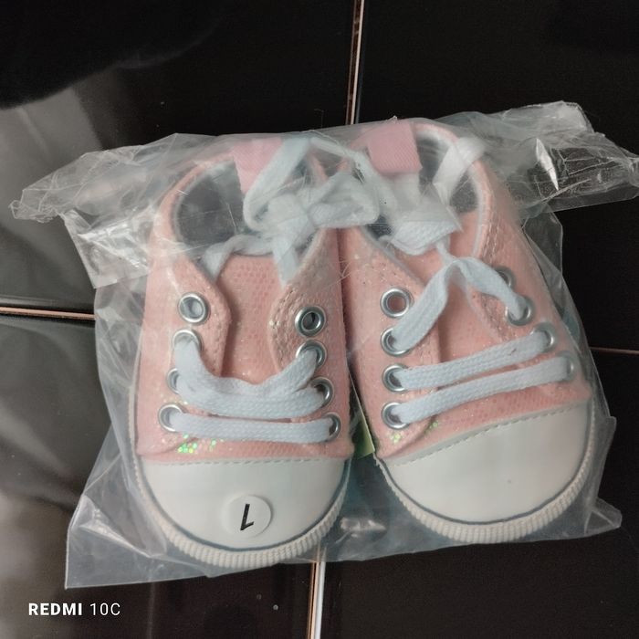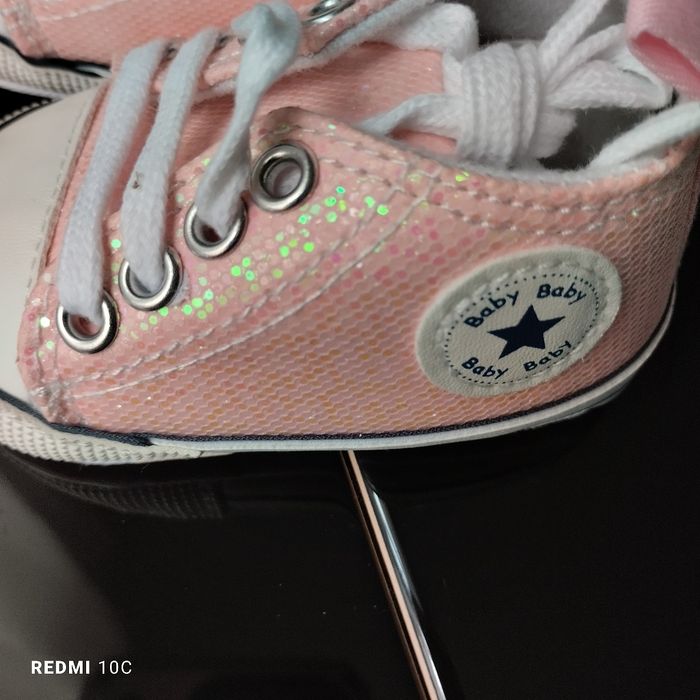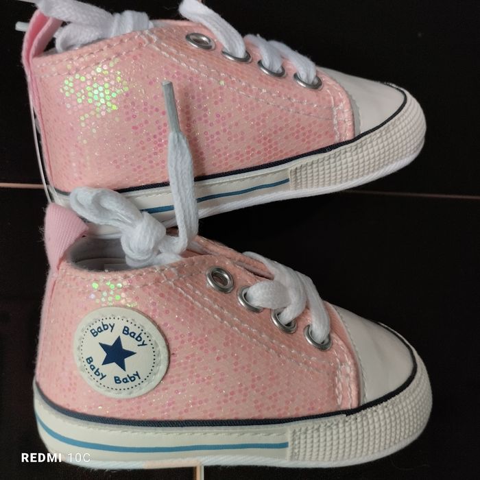 Basket Bébé Fille Taille : 0-6 Mois Matière : Toile Premier Pas Fermeture : Lacets Solide Légère Couleur : Saumon / Paillettes Marque : Fashion Neuve