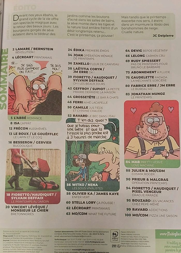 Magazine Fluide Glacial Hors Série N°98 Printemps... Ça pousse ! En bon état, une photo du sommaire pour savoir de quoi ça parle. Pensez au lots pour faire des économies! 10% de remise pour 2 articles 15% de remise pour 3 articles 20% de remise pour 5 articles