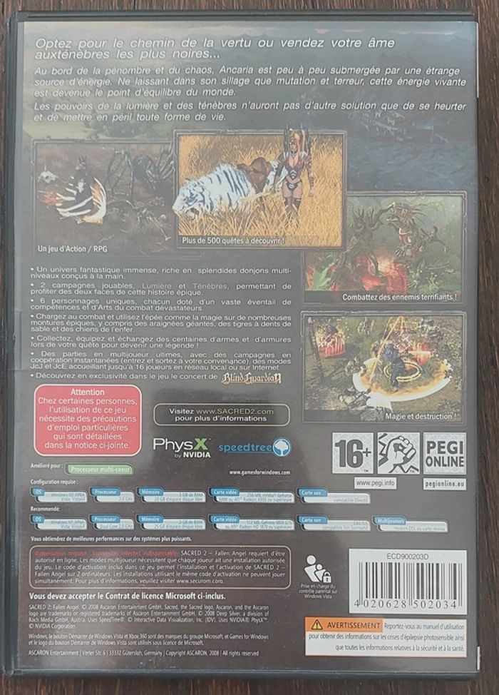 Sacred 2 Fallen Angel 2 CD en parfait état. Édition Française. Pour Windows (comme marqué dessus). Avec notice et clé d'utilisation. Vente en LOTS activées avec remises à la clé, profitez-en ! #retrogaming #sacred2fallenangel