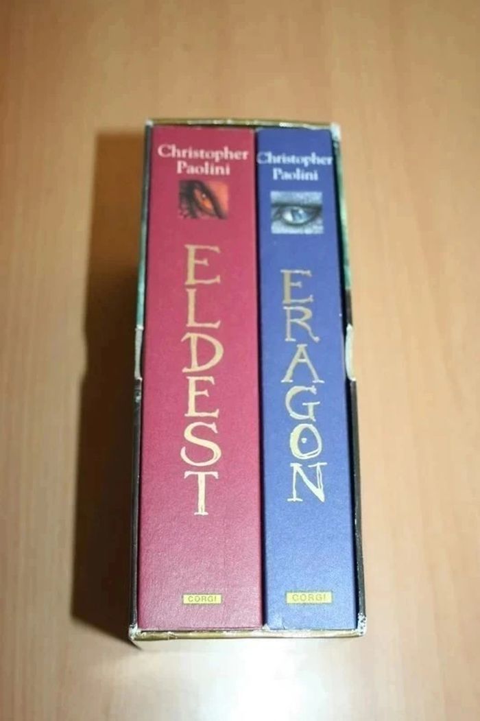 Eragon and Eldest by Christopher Paolini, coffret de 2 livres, Dimensions 13,5 x 8 x 20,5 cm, coins usés au coffret, 1232 pages, 970g