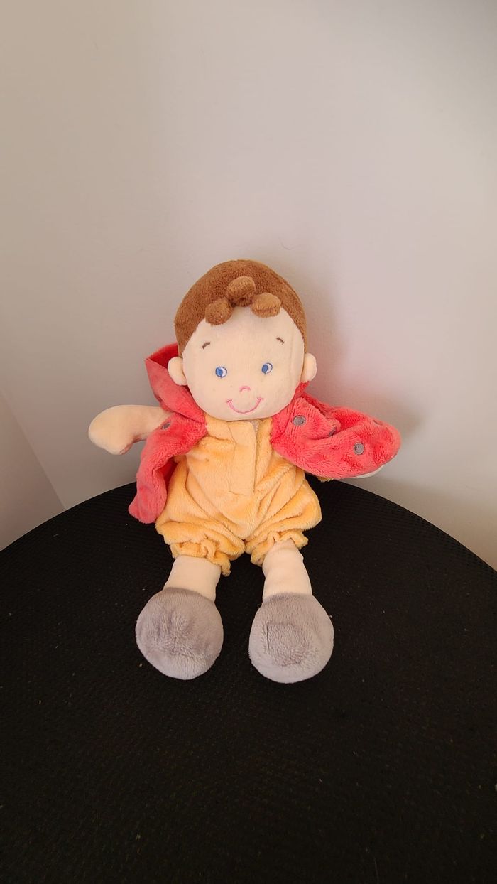 Doudou Garçon Lutin Rose Jaune Coccinelle 25 Cm 132