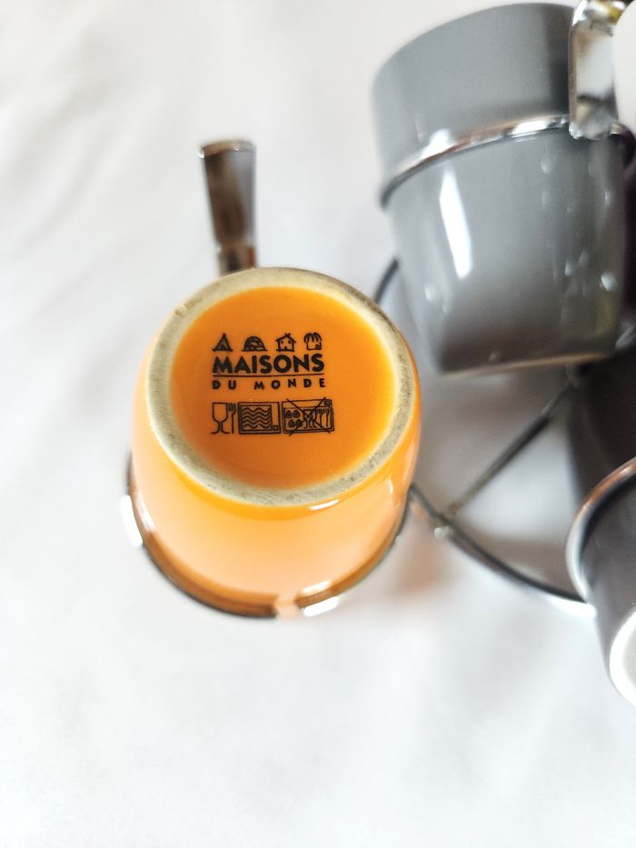 Service 5 tasses à café Maisons du Monde Etat: bon état (voir photos, zoomer pour bien voir). Marque: Maisons du Monde Support tasse à café en métal avec 5 tasses.
