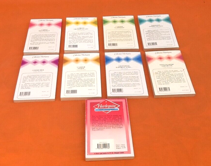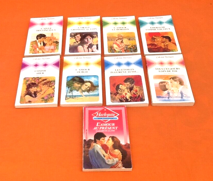 (article vendu en l' état, état d' usage voir toutes les photos) Lot de 8 Harlequin " Collection Harlequin " +1 bonus Harlequin Série Tentation Années 1980 N°376 N°382 N°392 N°404 N°427 N°428 N°429 N°430 + 1 bonus Harlequin Série Tentation N°217 Poids total : 834grs