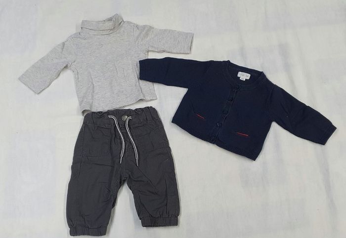 Ensemble garçon tee-shirt, pantalon et pull Taille 1 mois Marque Kiabi Brioche et autre Très bon état