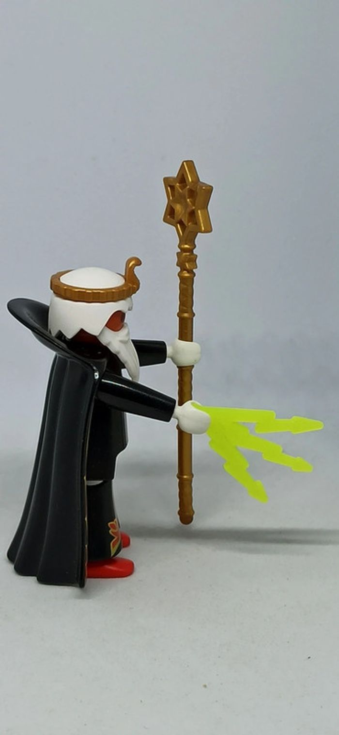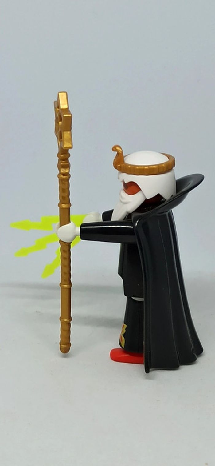 Homme mage magicien sorcier avec cape noire et éclair playmobil