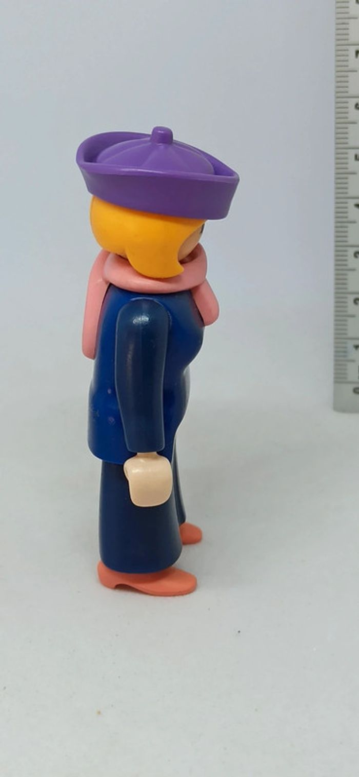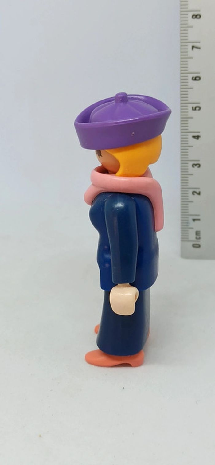 Femme belle époque victorienne habits bleu avec chapeau violet et foulard rose playmobil - photo numéro 4