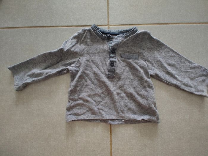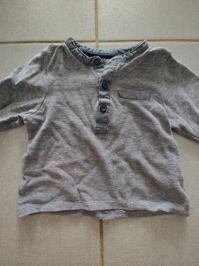 T-shirt manches longues à col boutonné 100% coton. Matière légère Taille 18 mois (81 cm) Foyer non fumeur