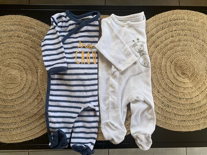 Lot de 2 pyjamas taille naissance de la marque pat & ripaton. 75% coton et 25% polyester