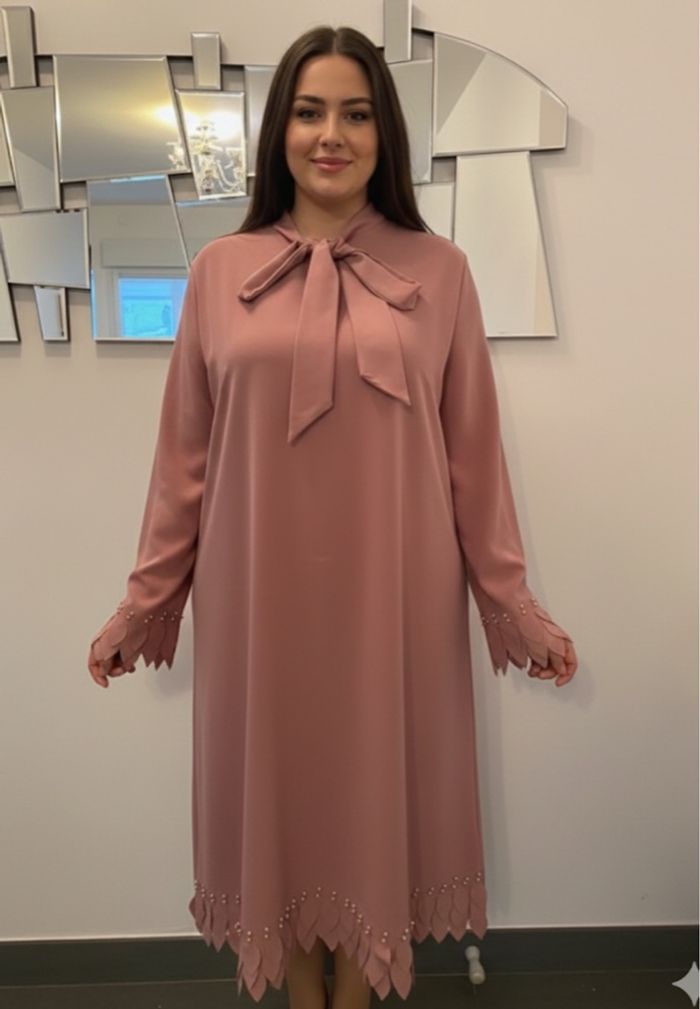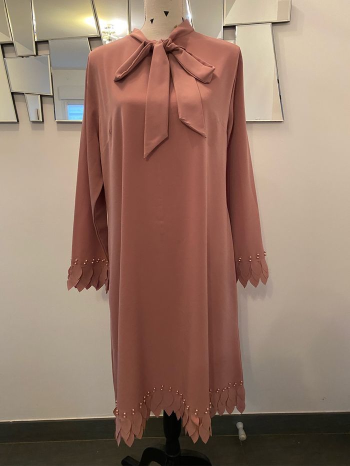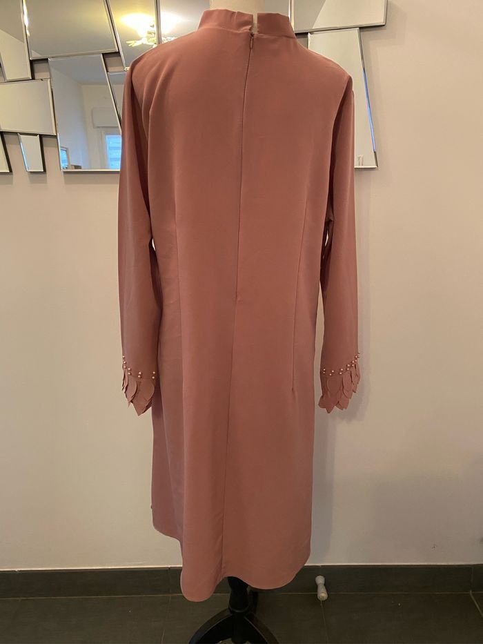 Robe parfaite pour un look chic. 🏷️Taille : 48 🎨 Couleur : rose 📏Dimension : Aisselle à aisselle 57 cm Longueur 1m02 ✅ Fermeture au dos, Noeud papillon en col, perle aux manches et en bas 🧼Etat : très bon état, peu porté 🔖Acheté 50€