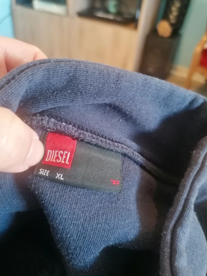 Bonjour, je vends ce gilet bleu marine de la marque Diesel taille XLen très bon état (1 petite tâche voir photo qui se voit à peine). Lavé maison non fumeur.