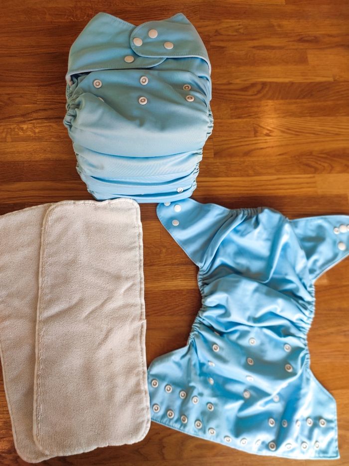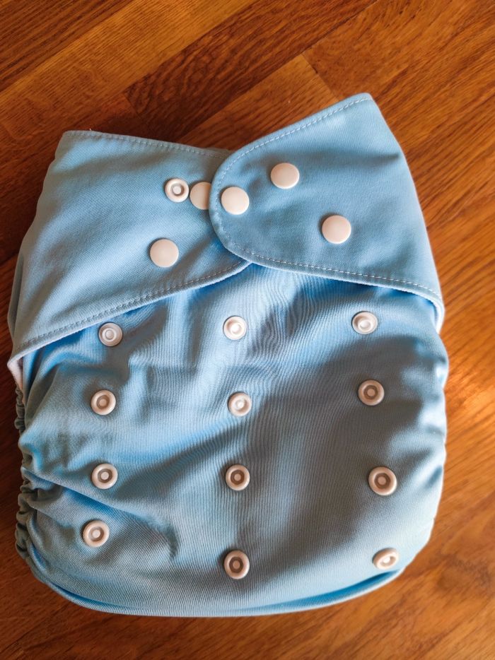 Lot de 6 grandes couches lavables réglables avec pressions Couleur bleu ciel Fournies avec 11 inserts Convient aux enfants jusqu'à 3ans au moins Toujours entretenue avec la routine et poudre adéquate Plusieurs lots disponibles