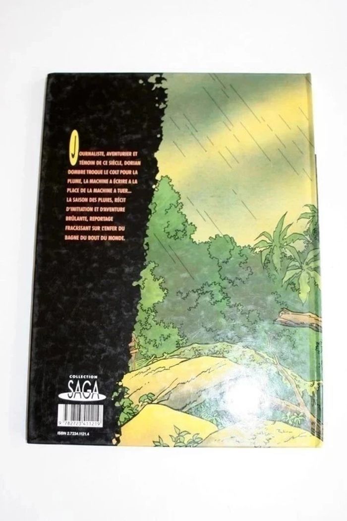 BD Dorian Dombre "La Saison des Pluies": Journaliste aventurier et témoin de ce siècle, Dorian DOmbre troque le colt pour la plume, la machine à écrire à la place de la machine à tuer... La saison des pluies, récit d'initiation et d'aventure brûlante, reportage fracassant sur l'enfer du bagne du bout du monde, collection Saga, 400g