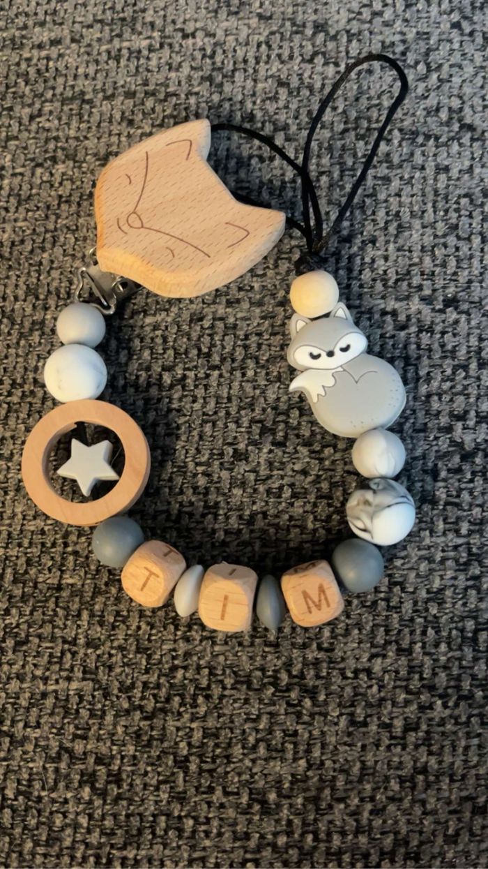 Attache tétine personnalisé en silicone ou en bois au souhait de l’acheteur . Personnalisable au choix de l’acheteur que ce soit la couleur comme le prénom ou le thème . Le fil est doublé pour plus de sécurité tout le long de l’attache tétine. N’hésitez pas à me demander et regarder mon dressing. Une photo vous sera envoyée avant l’expédition pour vous ayez un aperçu du rendu. Tous les produits sont réalisés avec du materiel spécial conçu aux bébés , enfants.