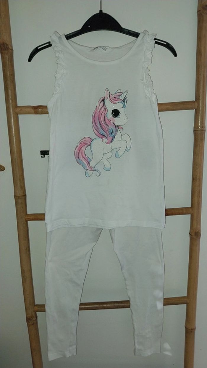Ensemble été fille 8 ans Blanc floqué Licorne excellent état