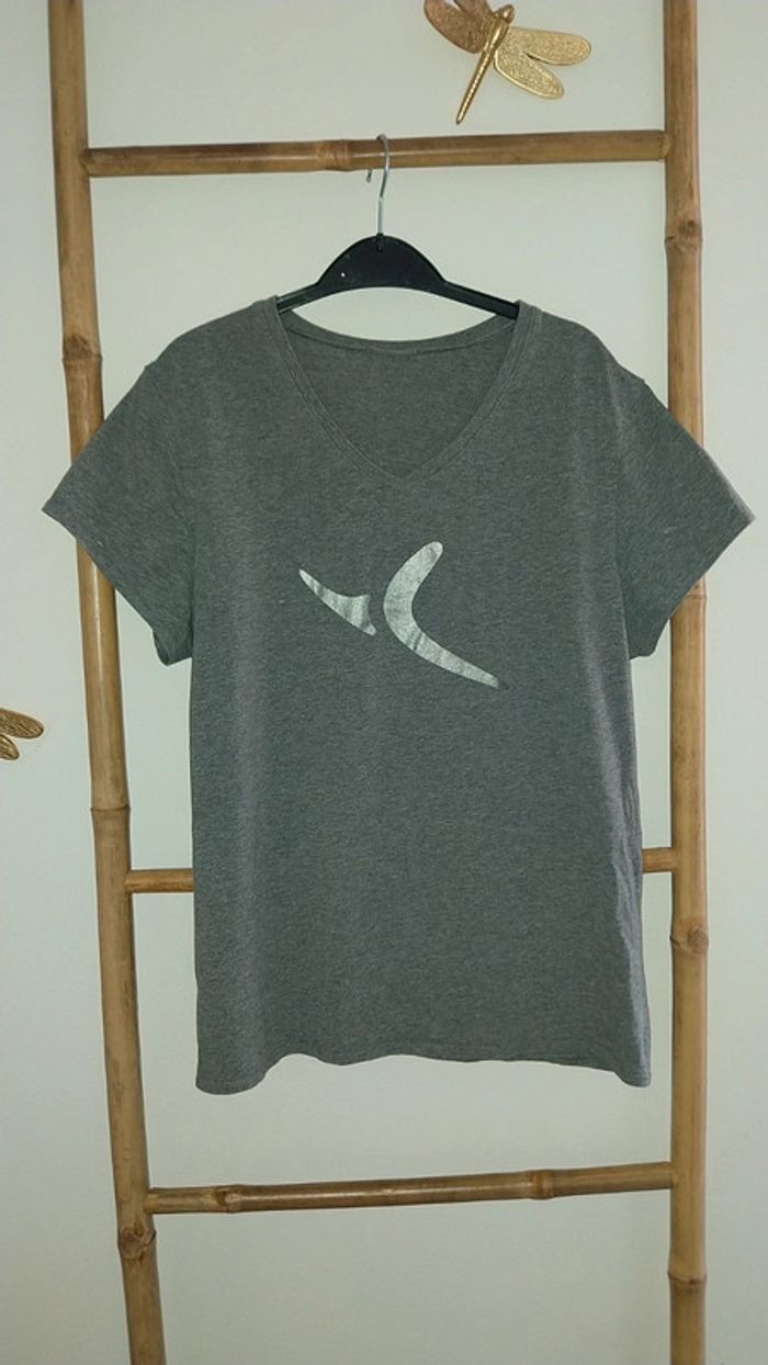 Tshirt manches courtes Domyos gris chiné Flocage argenté Taille M Très bon état - photo numéro 8