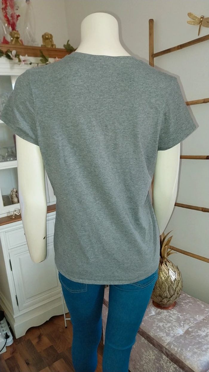 Tshirt manches courtes Domyos gris chiné Flocage argenté Taille M Très bon état - photo numéro 5