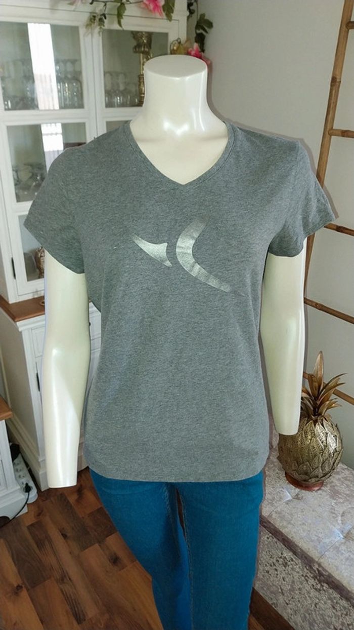 Tshirt manches courtes Domyos gris chiné Flocage argenté Taille M Très bon état - photo numéro 3