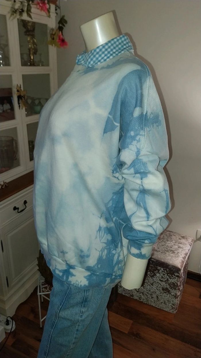 Sweat loose Col rond bleu et blanc by Bershka très bon état Taille Xs/S - photo numéro 9