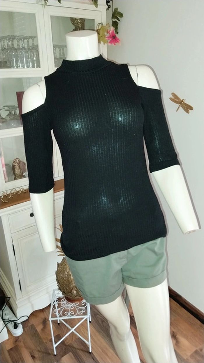 Top epaules dénudées noir côtelé by Jennyfer Taille M - photo numéro 6