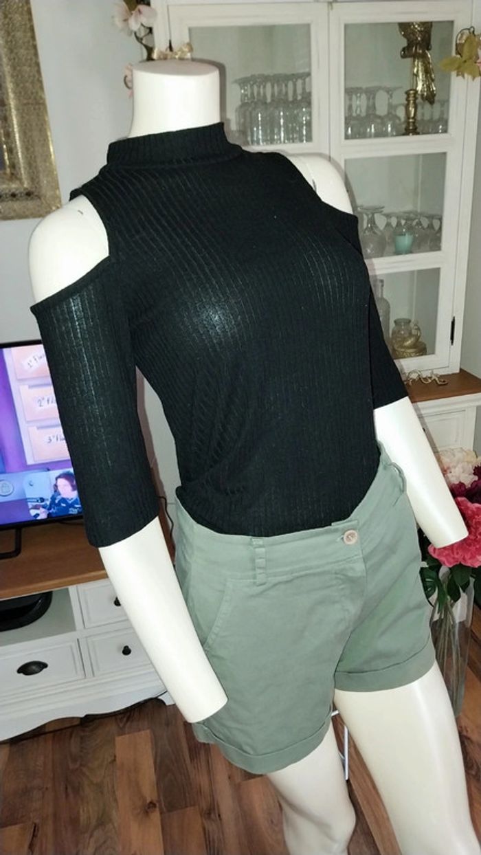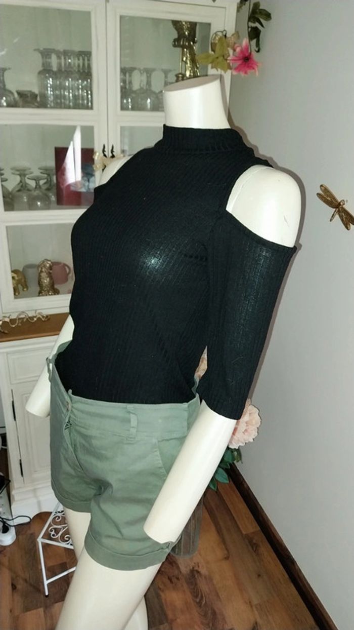 Top epaules dénudées noir côtelé by Jennyfer Taille M - photo numéro 5