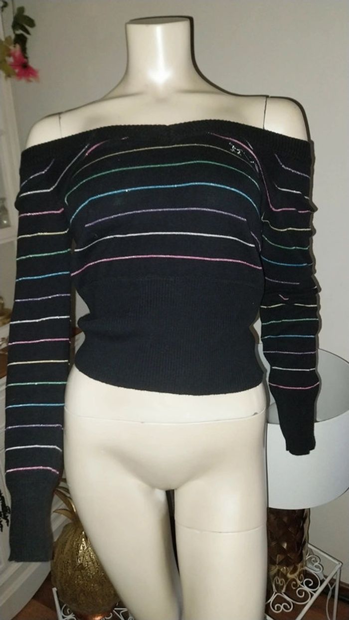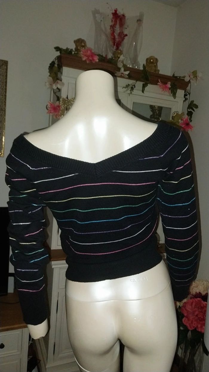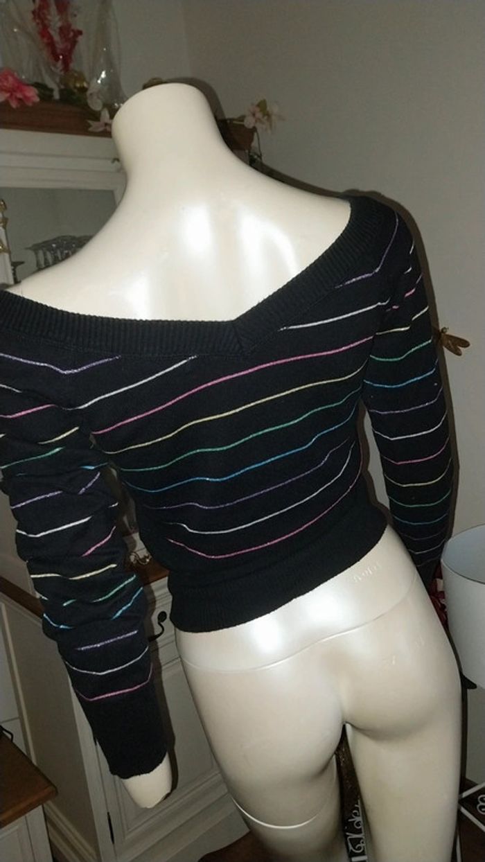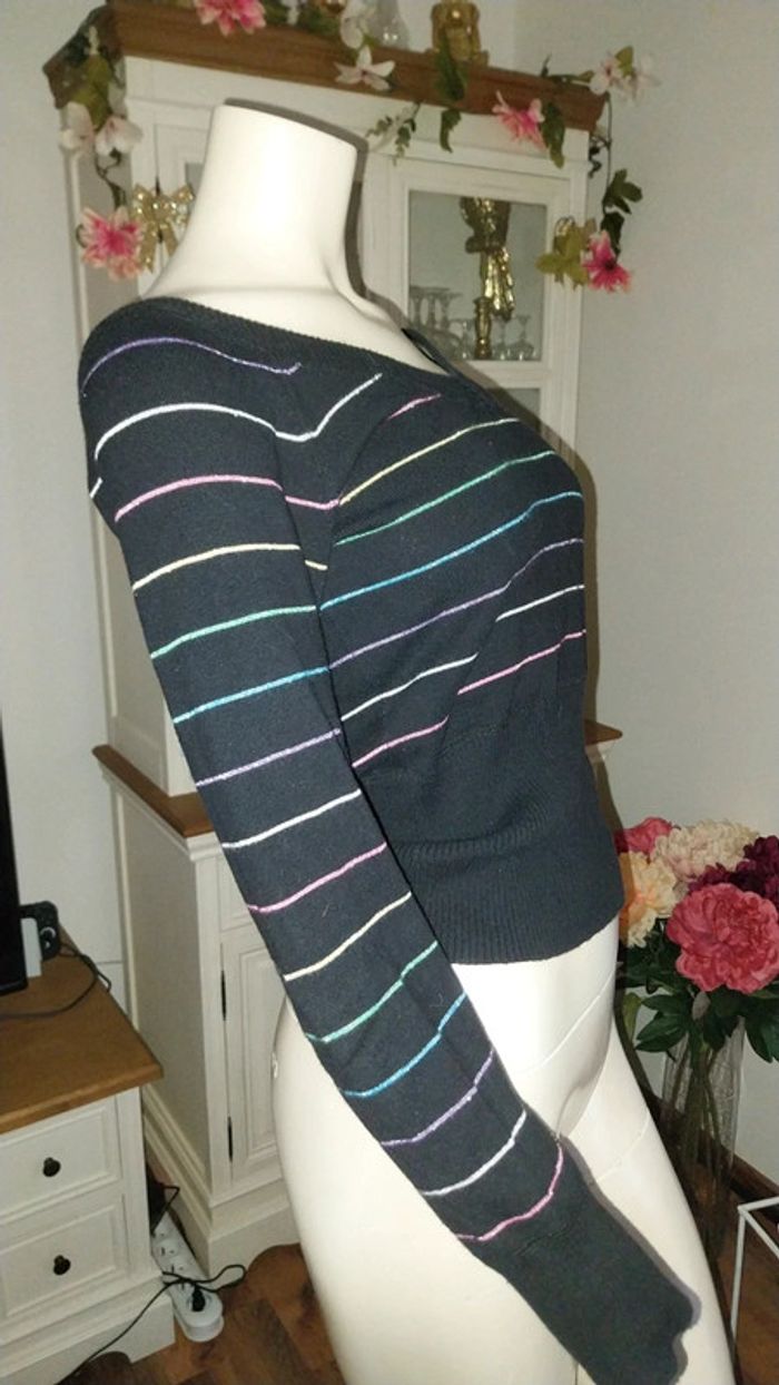 Pull fin noir rayé multicolore by Pimkie très bon état Taille S - photo numéro 10