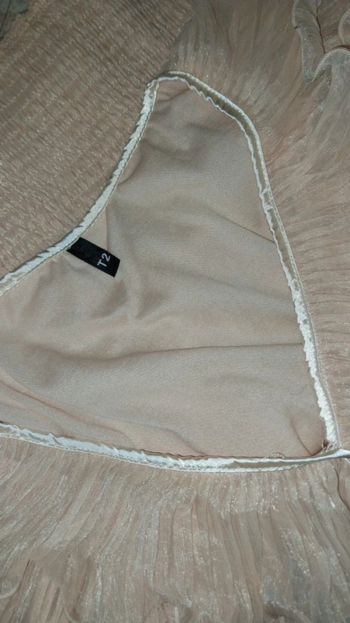 Top/ blouse volants rose poudré irisé très bon état Taille 36/38 - photo numéro 13
