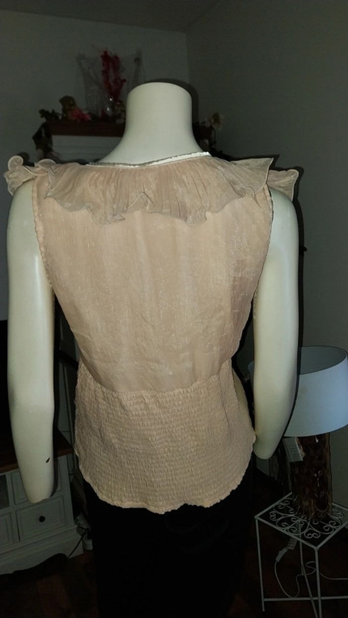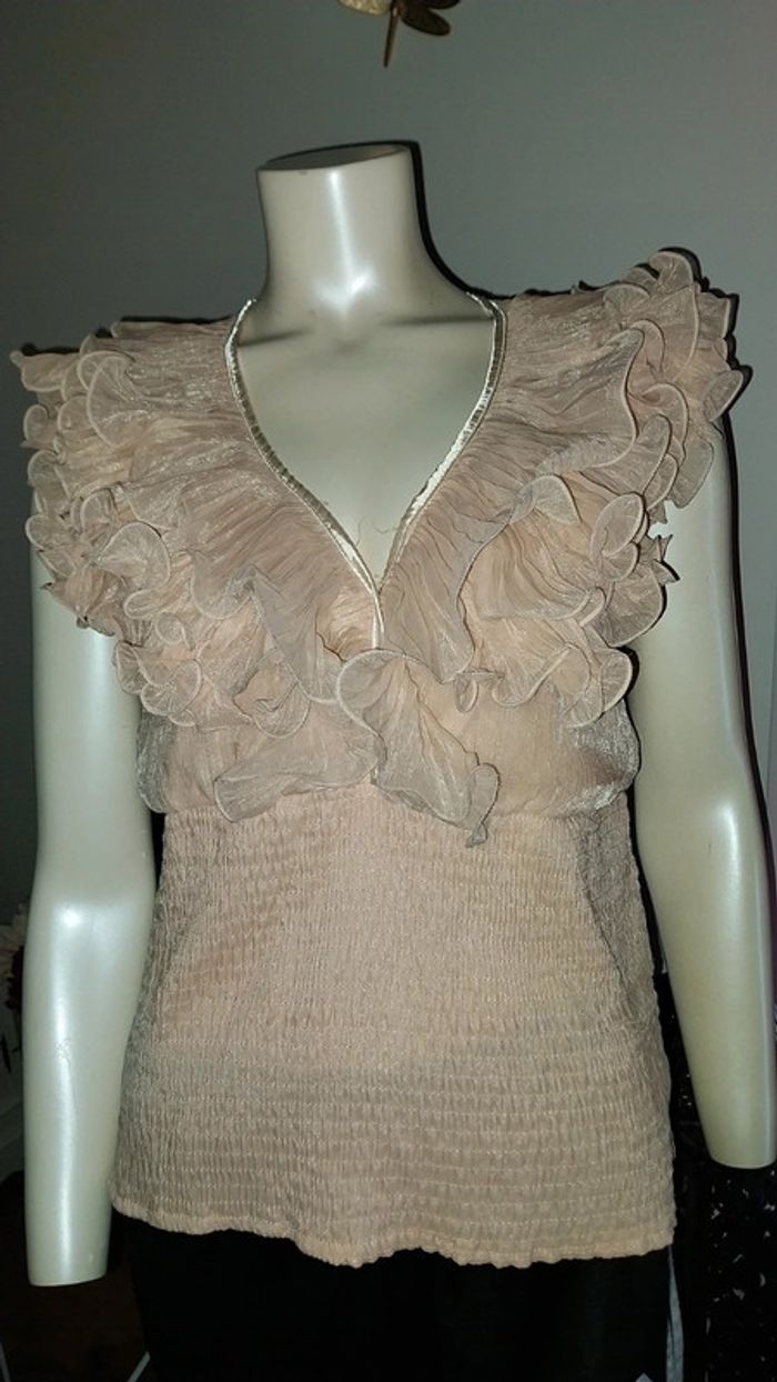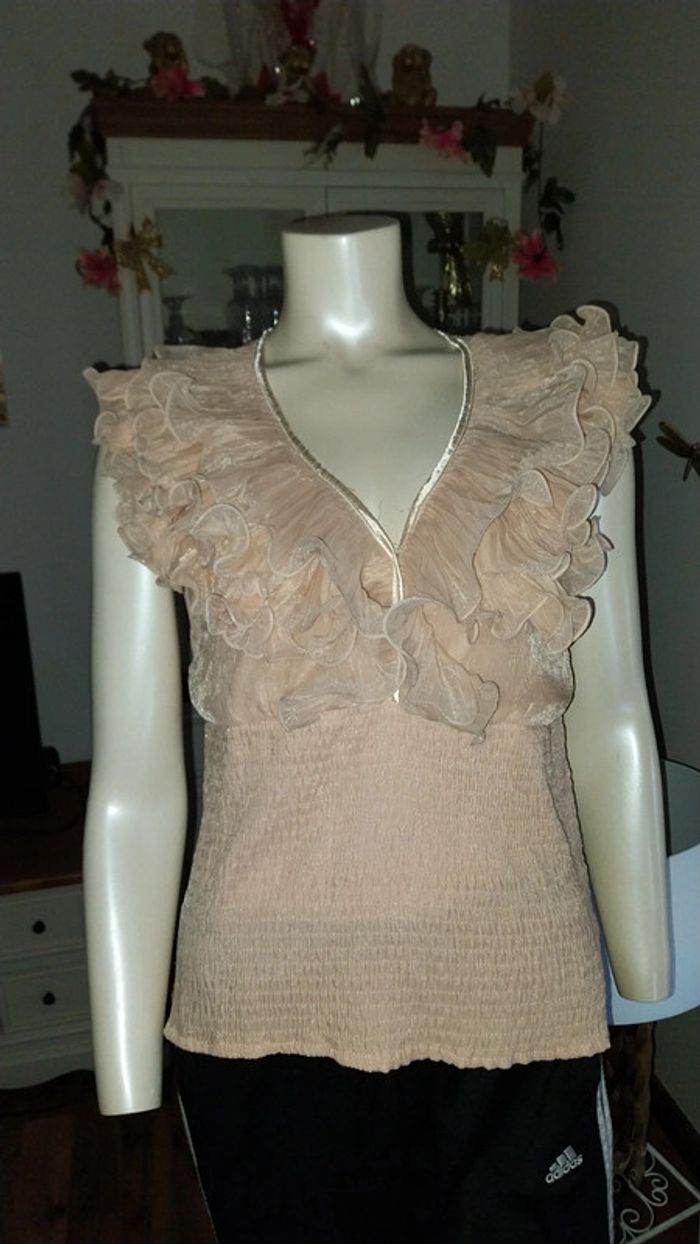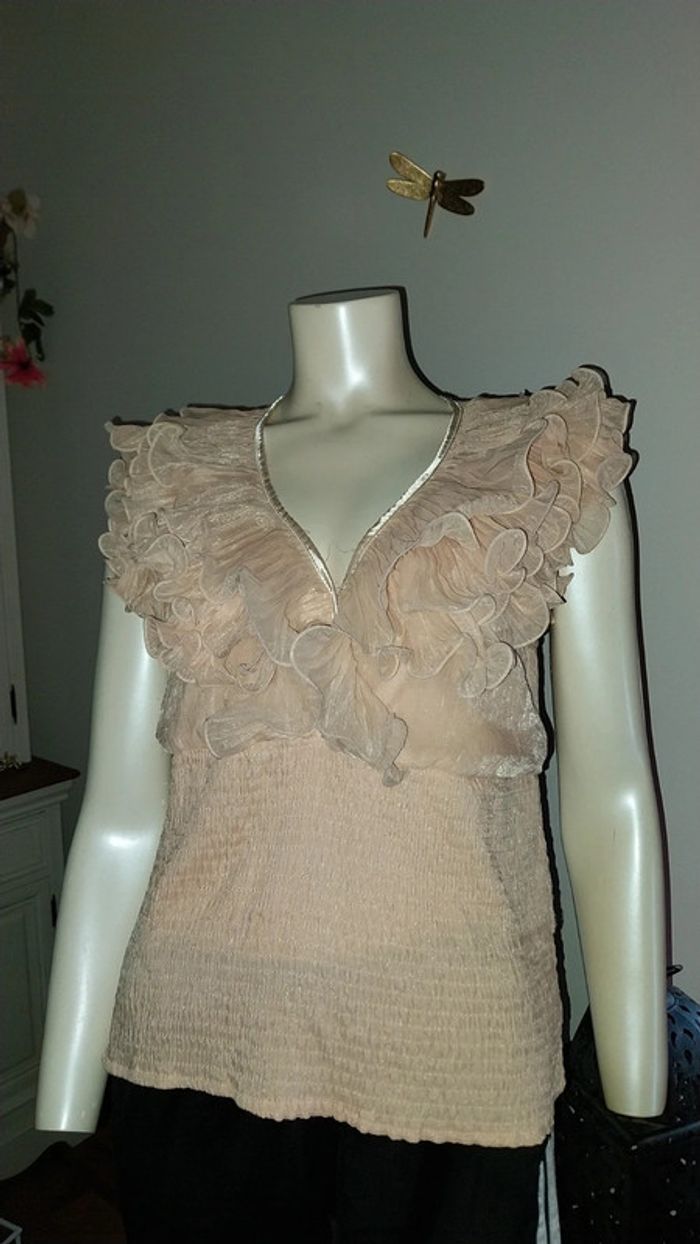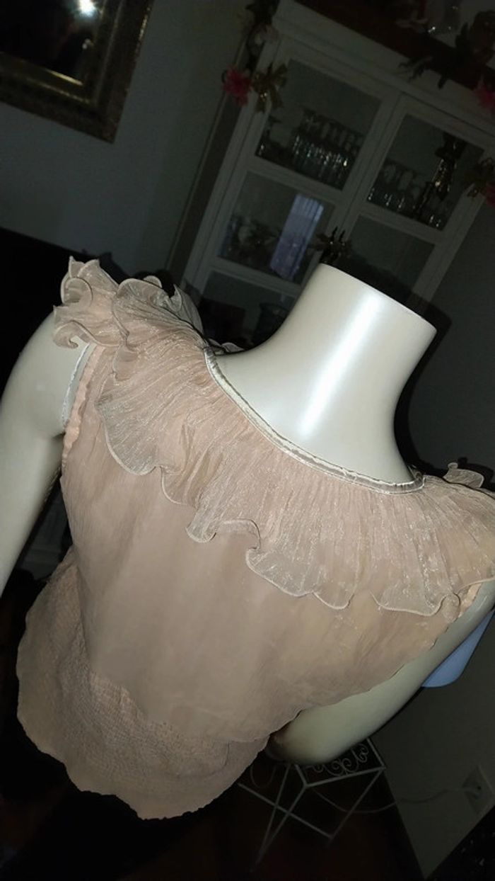 Top/ blouse volants rose poudré irisé très bon état Taille 36/38 - photo numéro 14