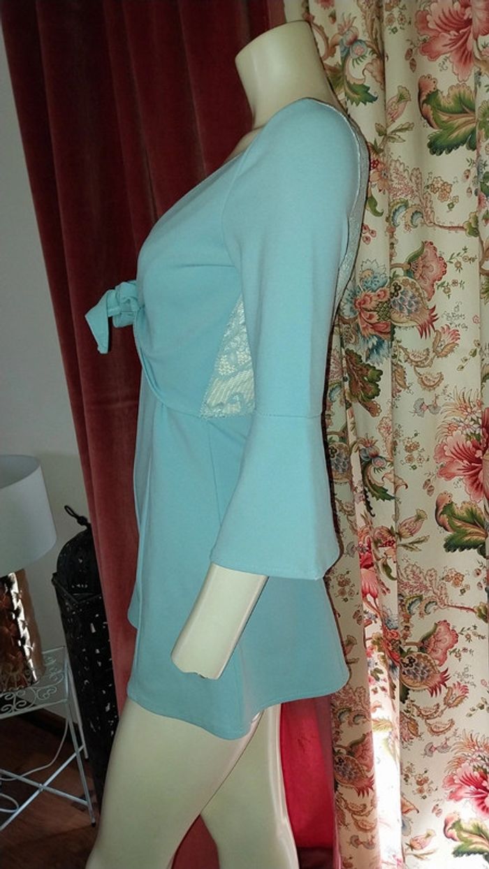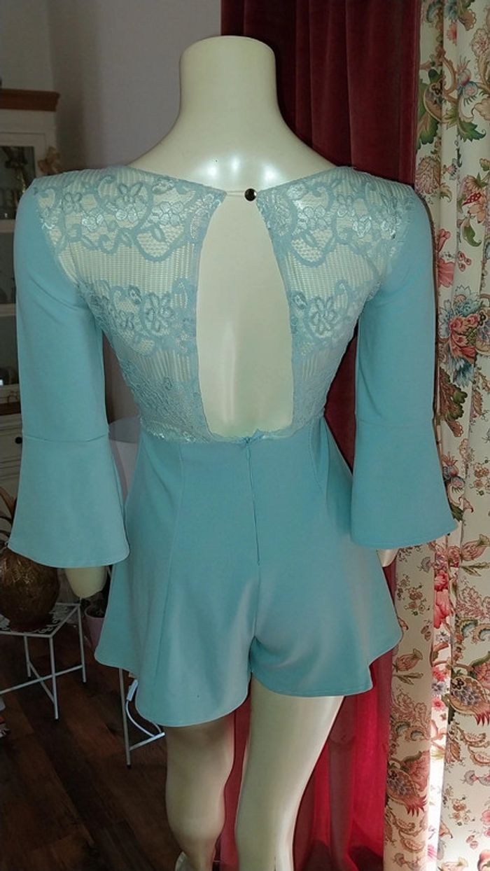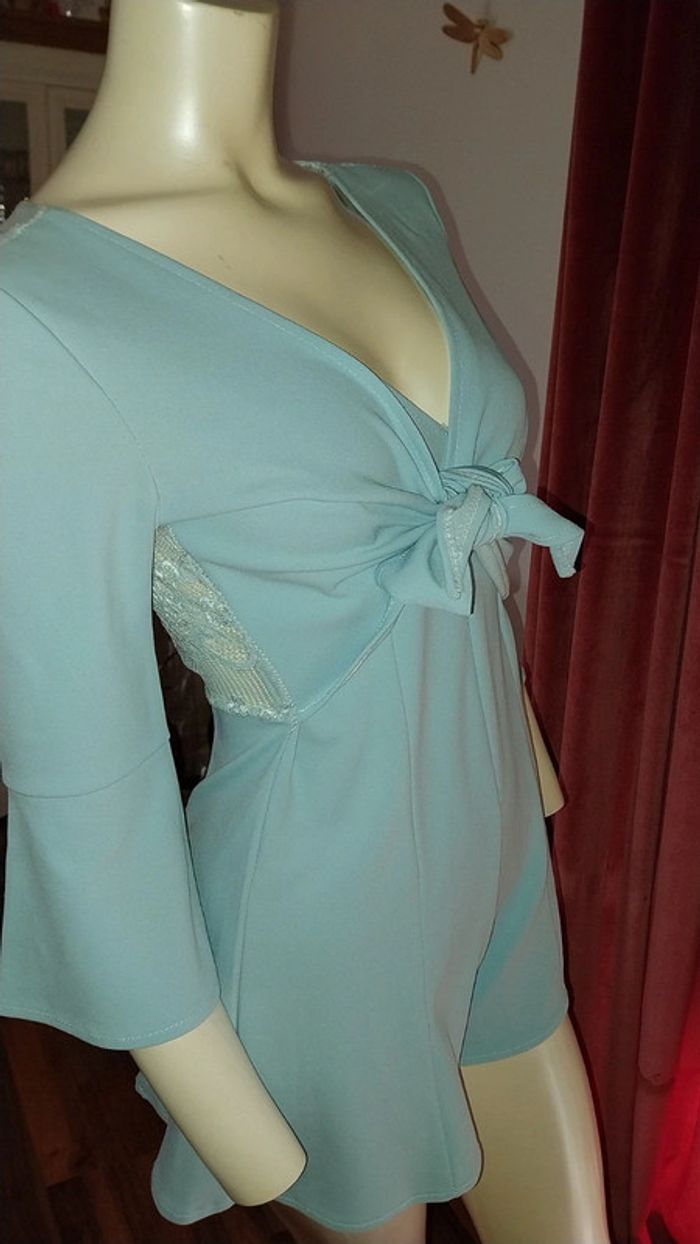 Combishort bleu ciel façon cache coeur et dentelle taille S tres bon etat - photo numéro 8