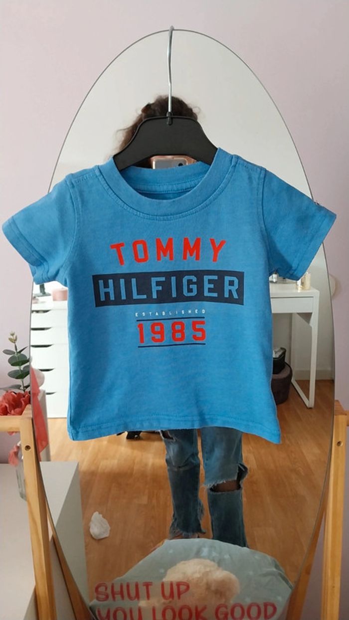 Tshirt Tommy Hilfiger bleu taille 12 mois tres bon etat - photo numéro 1