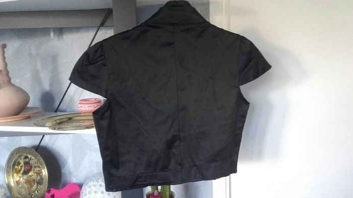 #blazer #veste #boléro #court #excellentétat #noir #satiné "boutonniereoriginale #colmontant #manchescourtes #musthave #boutiqueindependante #tailleS #peutconvenirpetitM #styleasiatique #sylepinup #glamchic #casual #atwork #détente