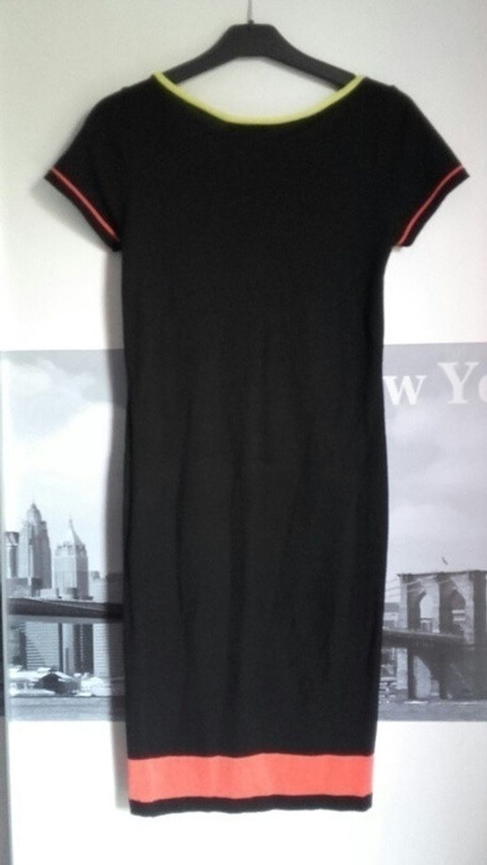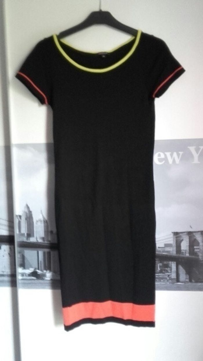 Robe Morgan neuve taille xs soit 36. Noir avec détails corail et citrus qui donne du peps à son aspect sobre et chic. Très ajustée elle dessine une silhouette canon. #musthavesummer2016 #Morgan #robenoire #moulantetconfortable #taille36 #taillexs