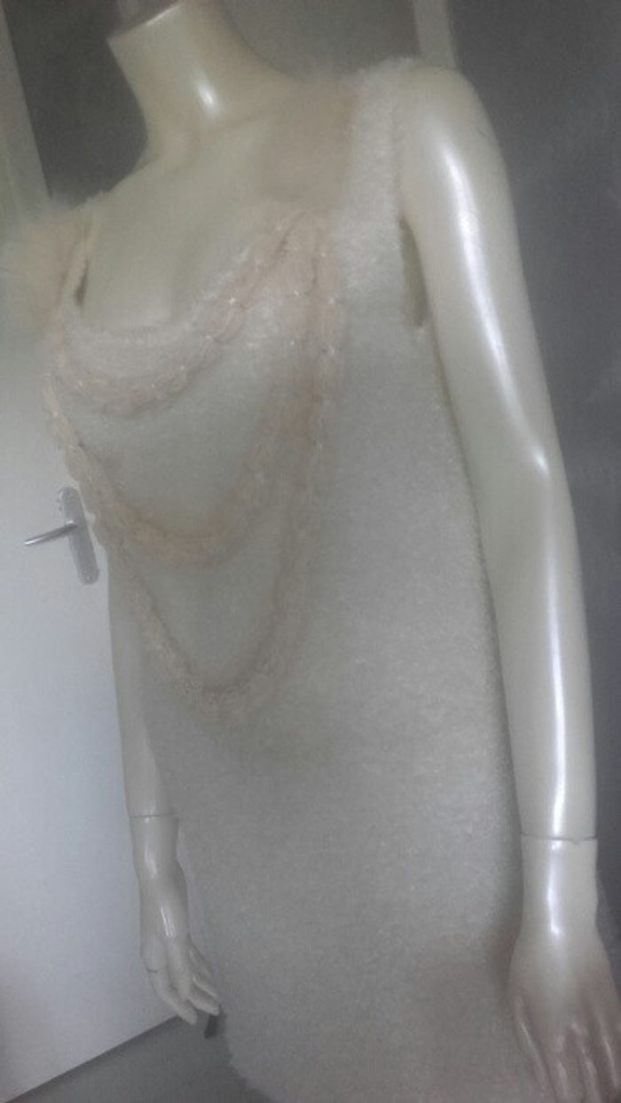 #robe #neuve de chez #mollybracken #tailleS #beige #blanccasse #ecru #nude. En matière #douce style #bouclette Détail collier et #poils A porter en #soirée ou #casual #chic #sexy #robecocktail #robesoiree #glamchic