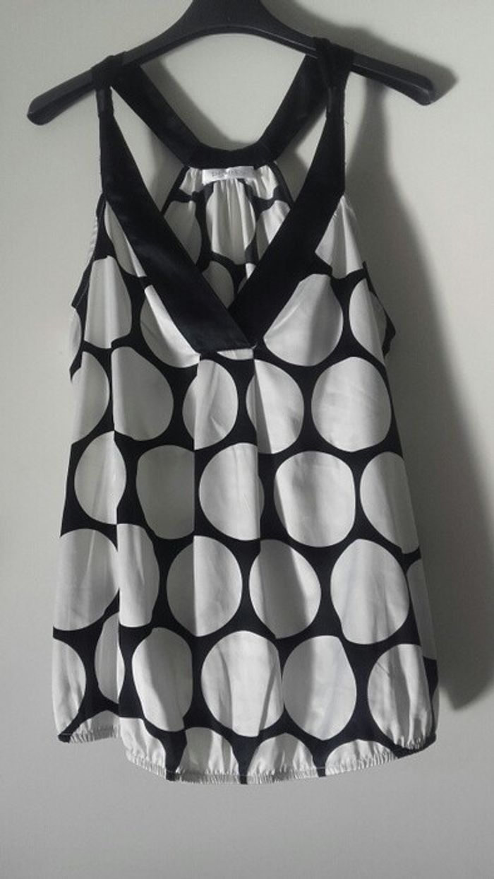 #top #débardeur #etatneuf #promod #taille36 #taille38. #blancetnoir #imprimé #cerclesblancs. #blouse #fluide #resserealataille Bretelles originales #musthave #vintedstyle #pinup #casual #casualchic #ete2016