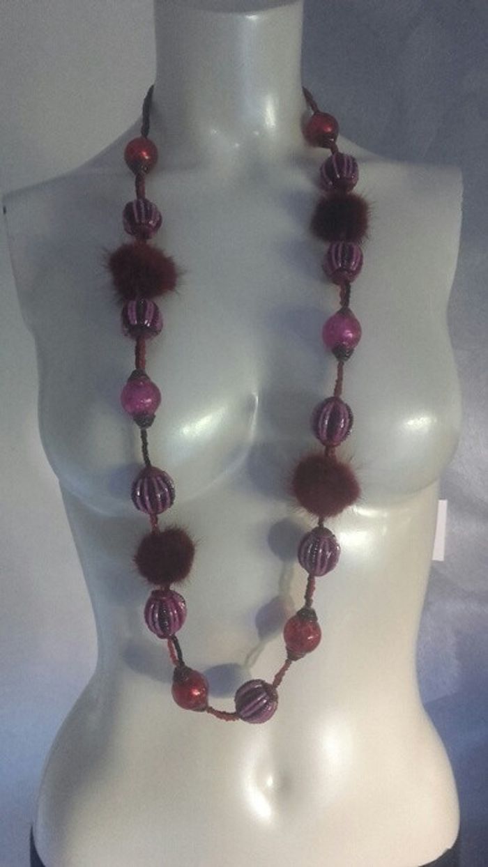 #collier #fantaisie #Neuf. Longueur d'un #sautoir orné de #perles et de #ponpons. Dans les tons de #rouge #magenta #fushia et #rose. #musthave #vintedstyle #original #bobostyle #bohème #toutessaisons