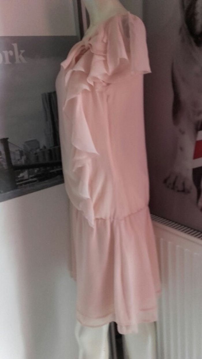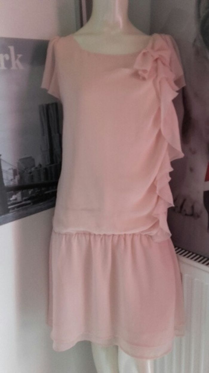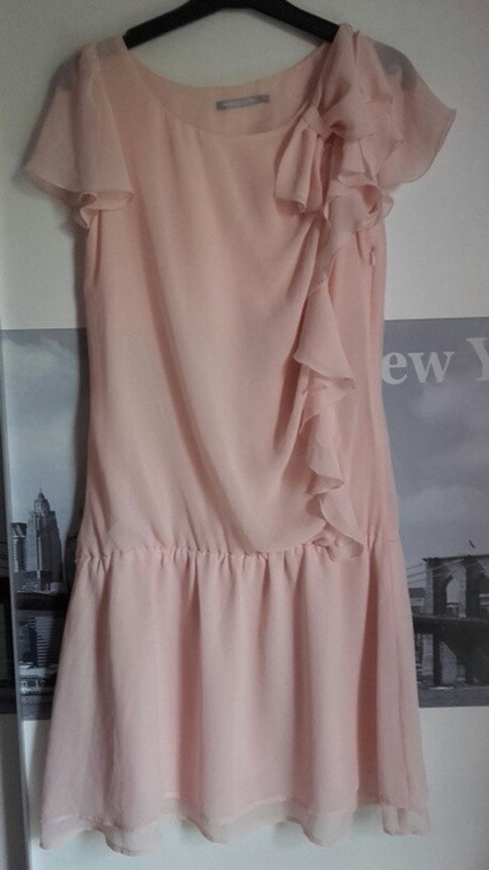 Robe état neuf, portée une fois. Rose poudree, fluide et légère avec des détails volants. A porter en mode casual avec une veste en jeans ou en soirée avec des escarpins et une pochette. Un must have de l'été 2016. Taille S.