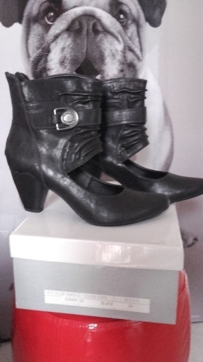Bottines neuves simili cuir noir. Talon 9cm. Sublimera aussi bien une tenue chic qu'une tenue casual ce printemps. #bottines #musthave #noir #simili #talons