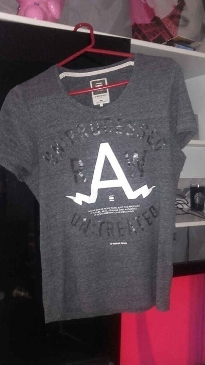Must have du dressing de ton amoureux #GStar# #Tshirt neuf# #Pour ta moitié ❤# Neuf porté pour la photo car trop juste pour mon mari Zéro défaut, gris chine avec impression blanche et noire