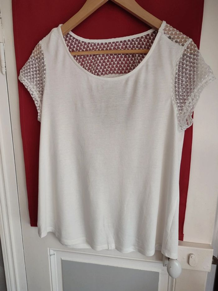 Haut blanc avec dentelle camaïeu taille xl