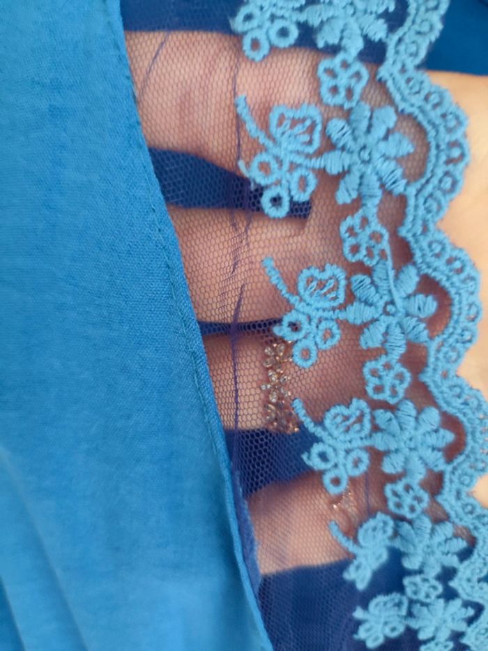 Robe bleu électrique Voile dentelle aux manches et dans le dos Pas d'étiquette de composition taille unique (du 38 au 42)