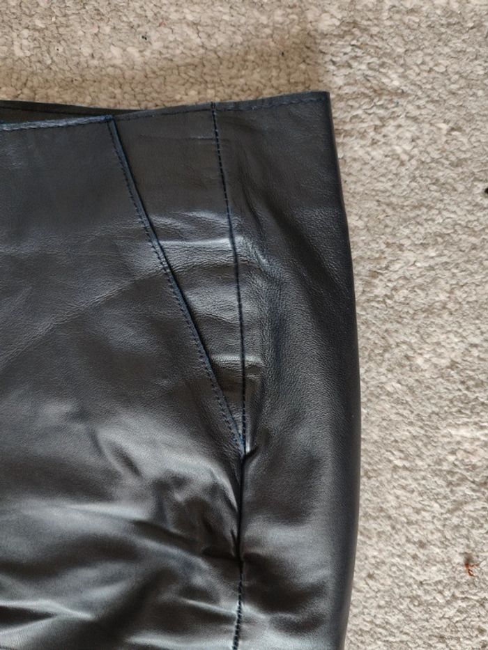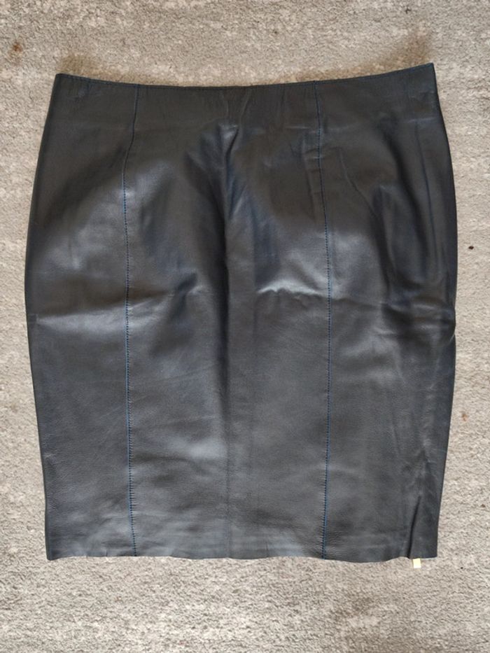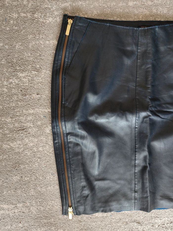 Mini Jupe bleu marine Modèle Jason 100% agneau Poche à gauche Fermeture éclair sur toute la longueur à droite Maje taille 38