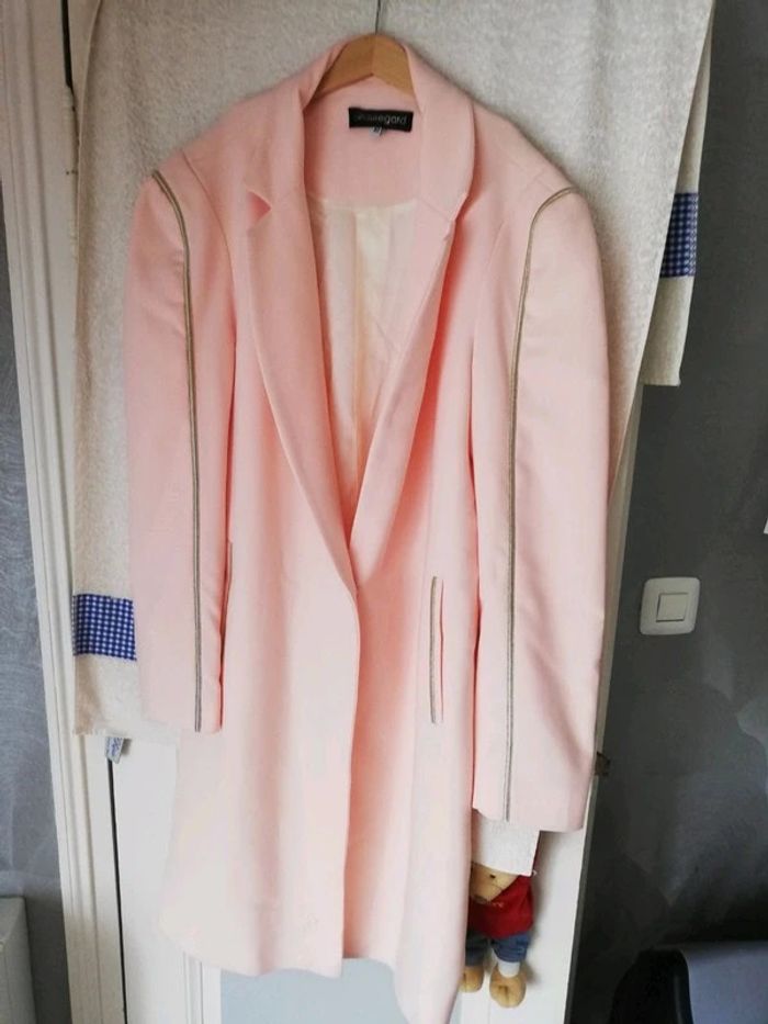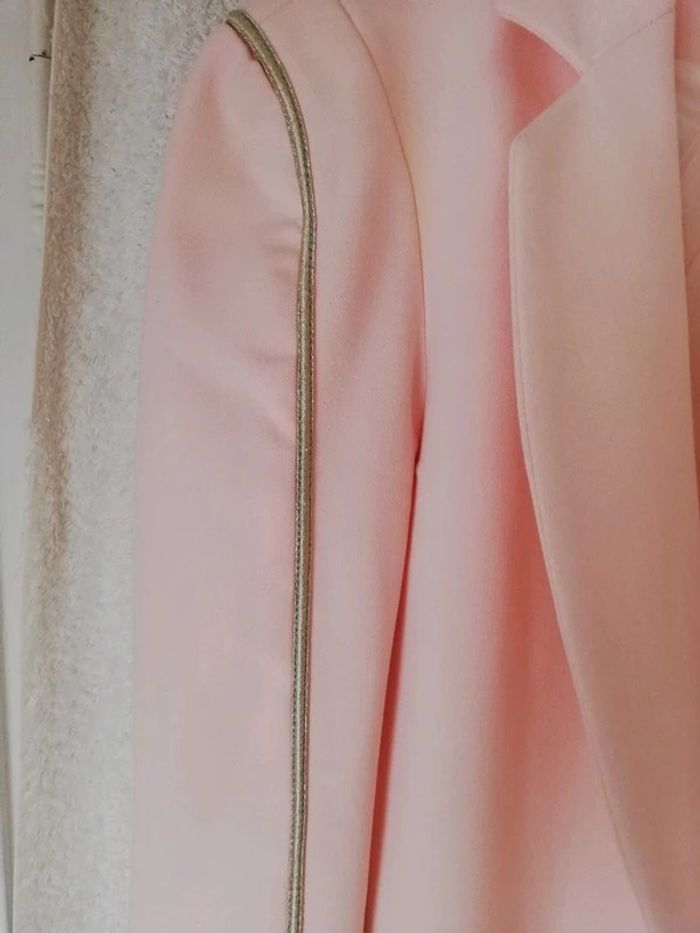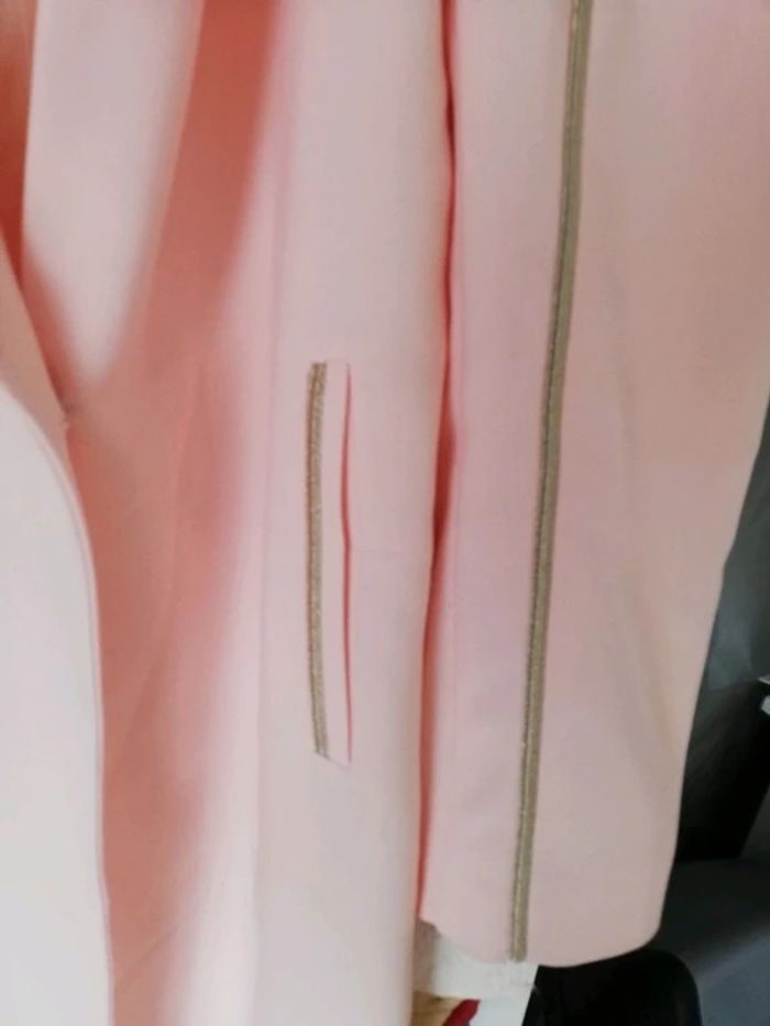 Veste longue rose avec liseret doré aux poches et aux manches Beuregard taille 42