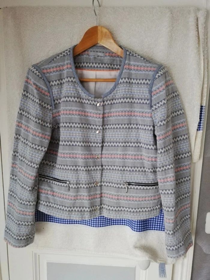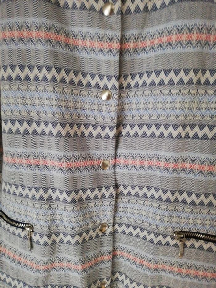 Veste etnique fermeture par bouton pression,bleue,blanc et rouge 100% coton doulure polyester et coton Etam taille 44