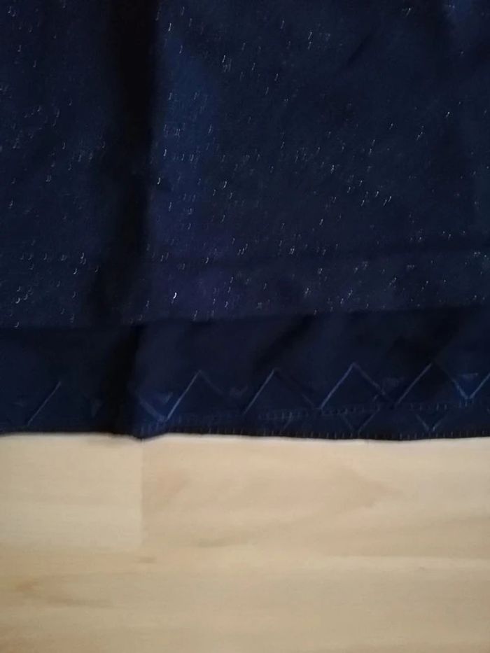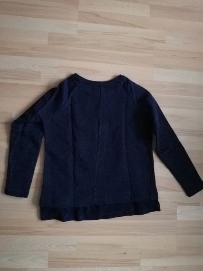 Sweat bleu marine pailleté avec tissu en bas pour donner l'illusion d'un chemisier qui depasse. En vente également un gris Promod taille XL
